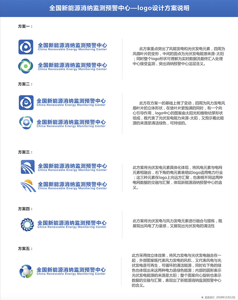 制約新能源消納的關鍵因素,為新能源的優化布局和行業政策制定提供參考,促進我國新能源高質量發展。 藍藍設計對全國新能源消納監測預警中心的工作范圍做了調查研究,首先理解業務和核心競爭力,之后調查了行業相關品牌標志設計,聽取了大家的期望,之后設計出多版logo供選擇。標志設計確定后進行了VI和宣傳冊的設計。