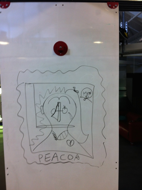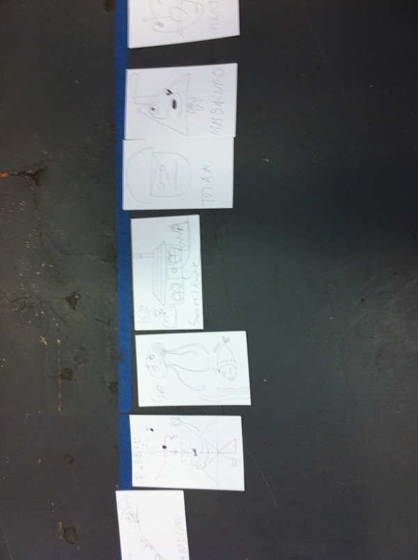 (然后是升級版,所有人一個,一人一筆去創造一個人物,還要給它命名。這個很有意思,因為會得到完全意料不到的結果,而越到后面卻越有默契,能“感應”得到大家都在往一個方向走,最后起的名字似乎就都是大家所希望的)