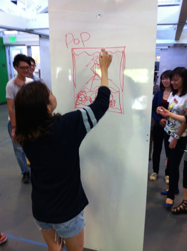 除了具體的步驟和視覺化思考,Design Thinking所倡導的社會化思考是一種設計態度,思維,和與人溝通的方法。所以貫穿在這五步里面,我們做了大量的Improv Game(即興游戲),去改變學生的思維方式,讓學生更懂得如何在團隊里與人合作(因為IDEO本身就是很注重團隊精神的)以下列舉幾個有意思的: