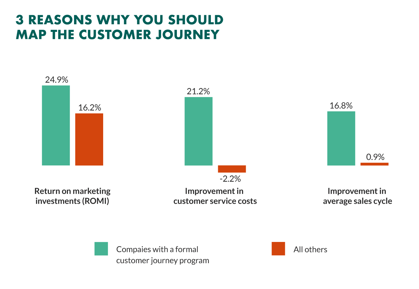 阿伯丁集團(tuán)(Aberdeen Group)的同一項(xiàng)研究發(fā)現(xiàn),只有 36% 的公司有規(guī)劃客戶旅程圖的流程,這會(huì)為你的企業(yè)創(chuàng)造競(jìng)爭(zhēng)優(yōu)勢(shì)提供了巨大的機(jī)會(huì)。