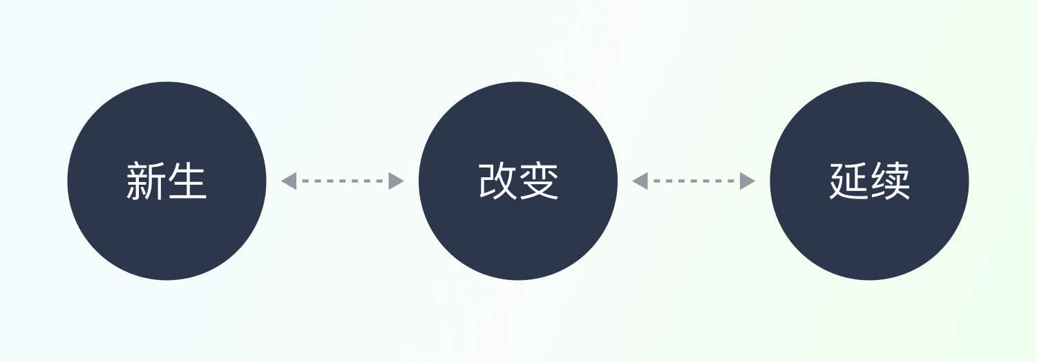 可以理解成一件事情的新生、改變和延續。