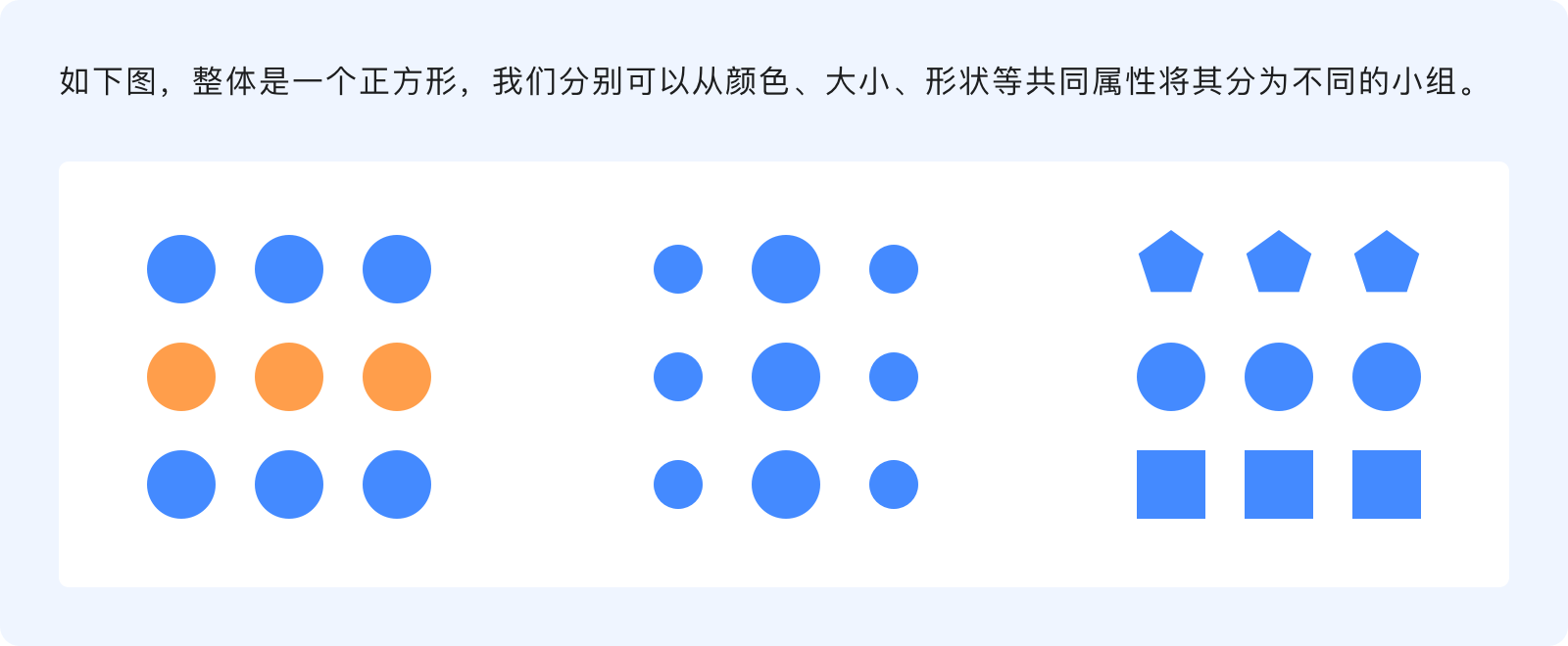 相似性原則指出,有共同視覺(jué)元素的物體看起來(lái)更有關(guān)聯(lián)性,我們傾向于將彼此相似的元素(形狀、尺寸、方向、顏色...)分為一組,這就意味著當(dāng)功能、含義和層次結(jié)構(gòu)相同時(shí),更應(yīng)該讓它們?cè)谝曈X(jué)上保持一致性。