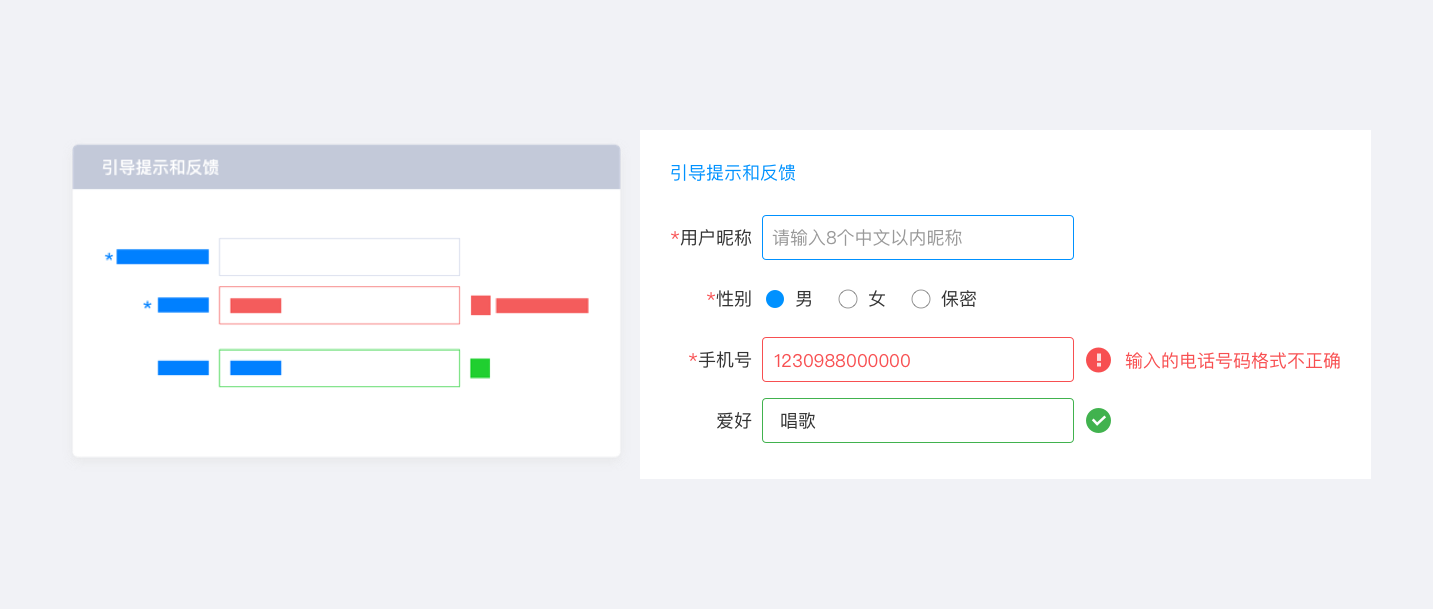 手機(jī)號后面的紅色錯誤提示便是反饋提示,是對填寫信息的一個反饋結(jié)果。