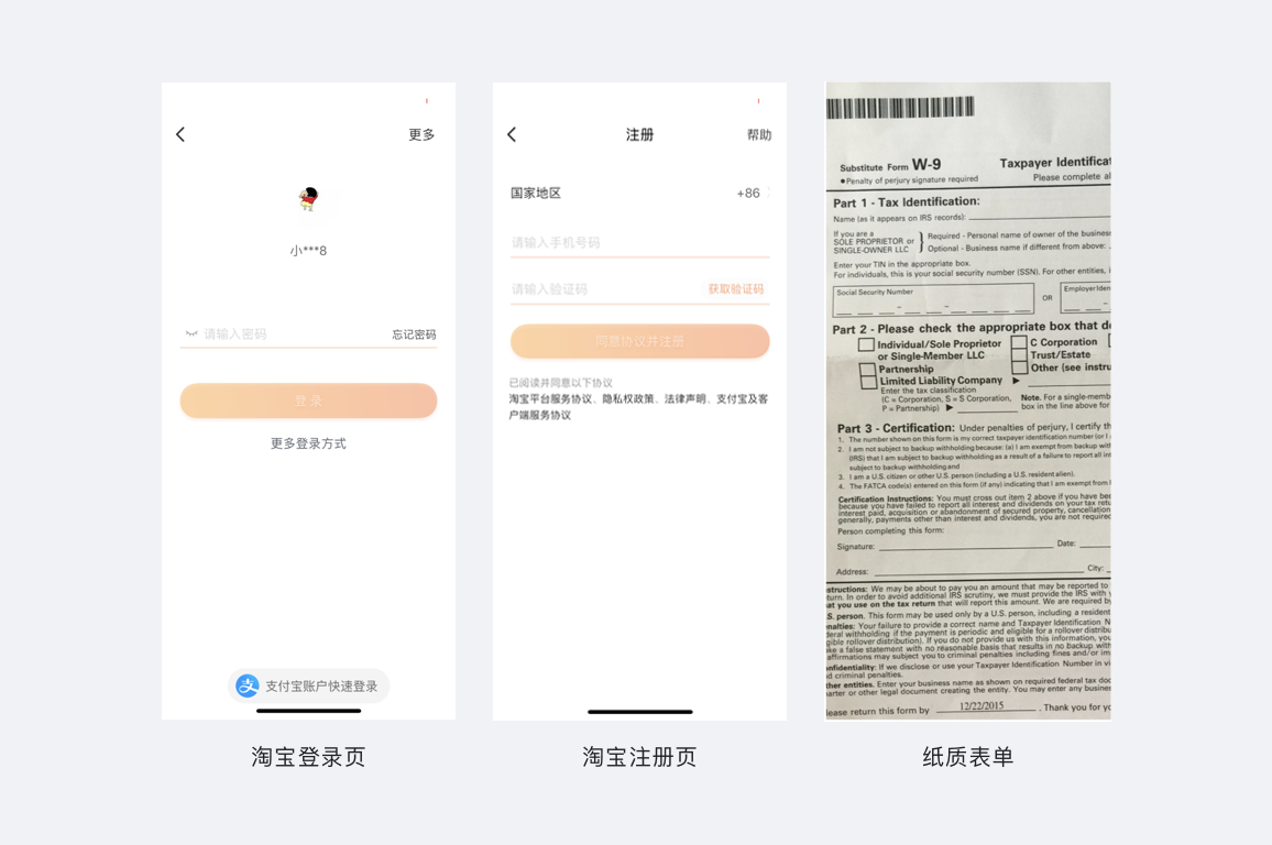 淘寶的登陸、注冊、紙質(zhì)的單子便是表單