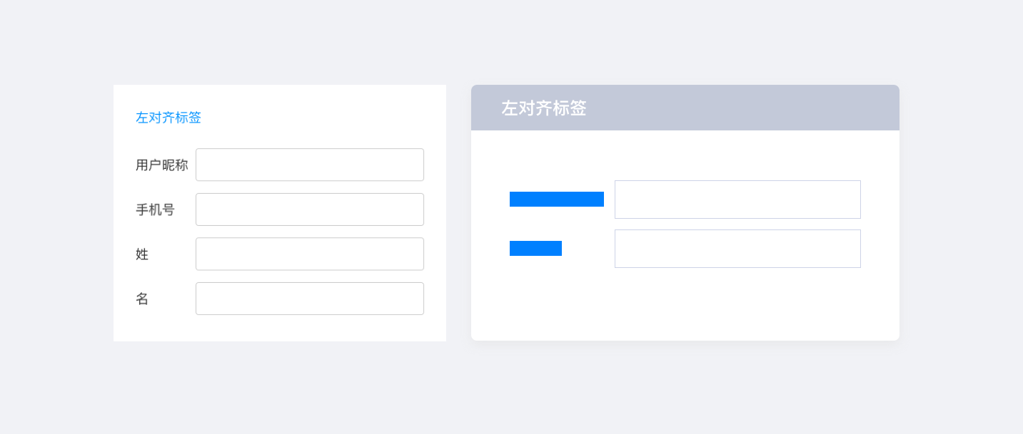 左對齊標(biāo)簽使用場景:需要用戶謹(jǐn)慎填寫的情況下推薦使用左側(cè)對齊標(biāo)簽。