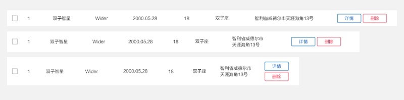 當寬度拖到第三種情況,按鈕也出現了換行,那每一行的高度都應該按照這個高度保持一致,即使有一些數據只有一個按鈕/地址并沒有出現換行,如圖: