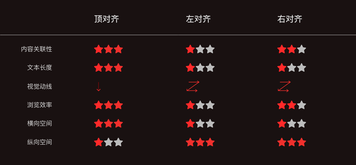 如何去選擇這三種對齊方式呢?我們從內容關聯性、標題長度的靈活性、空間的占比、閱讀體驗等幾個維度進行優劣分析。