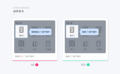 戶型繪制和調整是酷家樂工具的必經之路,由于對象間用2D圖形圖例表達比較難辨識出來準確意思,因此設計做了圖形信息的優化,讓命令更為直觀,更高效的拾取命令操作。