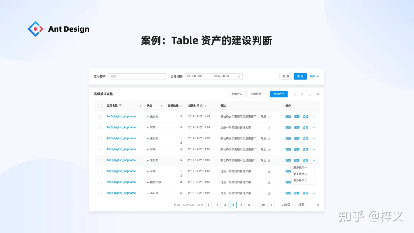 我們都知道,任何一個設計系統都有關于表格組件的定義,但各有差異。這種差異的根源也正是從物的規范去理解表格這個資產帶來的。過去我們內部也是從物的角度去抽象結構表格的建設范圍,會發現越抽象越多,最終只能交給專家感性判斷做什么與不做什么。