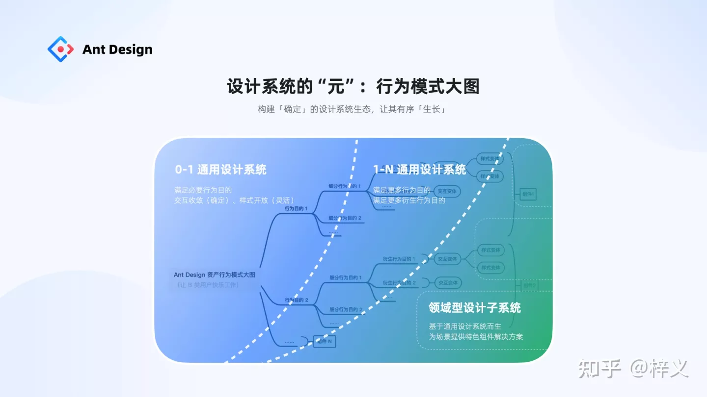 這里也跟大家分享我們的一些判斷,如果你所服務的企業還處于中小型初創階段,那么你可以建設一個滿足必要行為目的的「0-1 通用設計系統」,用 ADM 確保組件交互是收斂確定的,用底層 token 的靈活度機制讓樣式足夠的開放,可被靈活定制。如果伴隨的企業業務壯大,你可能需要更成熟和大型的設計系統,此時你可以通過滿足更多的行為目的和衍生行為目的來構建一個「1-N 通用設計系統」。