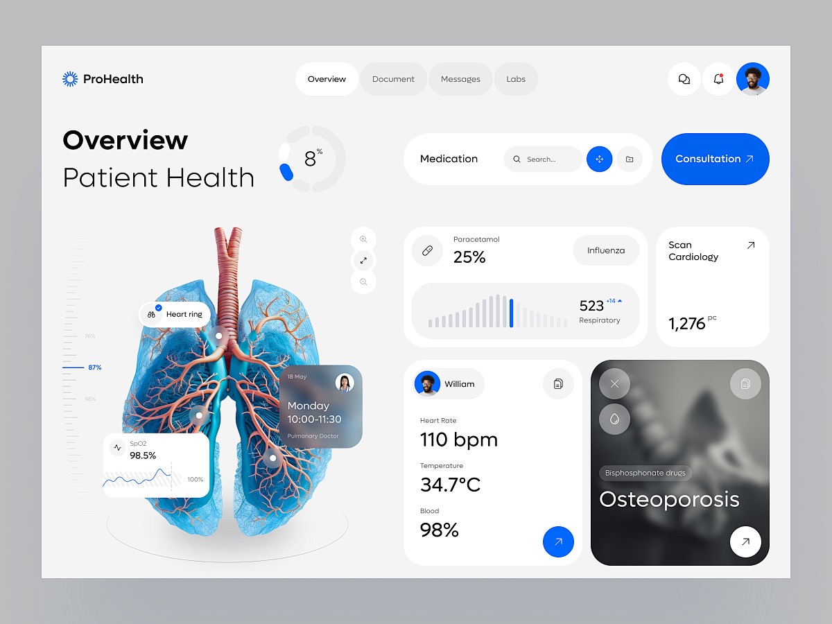 針對患者的醫療 UI 設計,功能重點在于信息查詢與服務獲取。患者需要能夠方便地查詢自己的就診記錄、檢查報告、費用明細等信息,因此在患者端的醫療 APP 或醫院官網界面上,應設置專門的信息查詢入口,并以清晰易懂的方式呈現數據。同時,提供在線預約掛號、繳費、藥品配送等服務功能,實現就醫流程的線上化,減少患者排隊等待的時間。此外,一些健康管理功能也受到患者的歡迎,如個人健康檔案管理、疾病預防知識推送、康復訓練指導等。