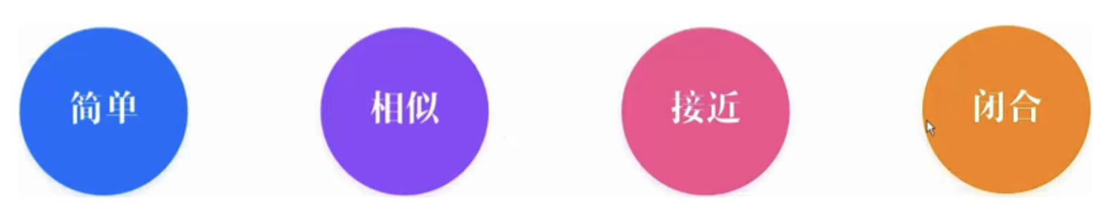• 相似:眼睛易關注相似物體(形狀、大小、顏色),無論位置是否相鄰,都會將其聯系起來。