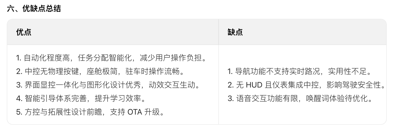 核心結(jié)論:Tesla Model 3 在智能化與極簡(jiǎn)設(shè)計(jì)上表現(xiàn)突出,但導(dǎo)航與語(yǔ)音功能的短板、安全隱患(無(wú) HUD)仍需優(yōu)化,物理按鍵的取舍是未來(lái)迭代的關(guān)鍵爭(zhēng)議點(diǎn)。