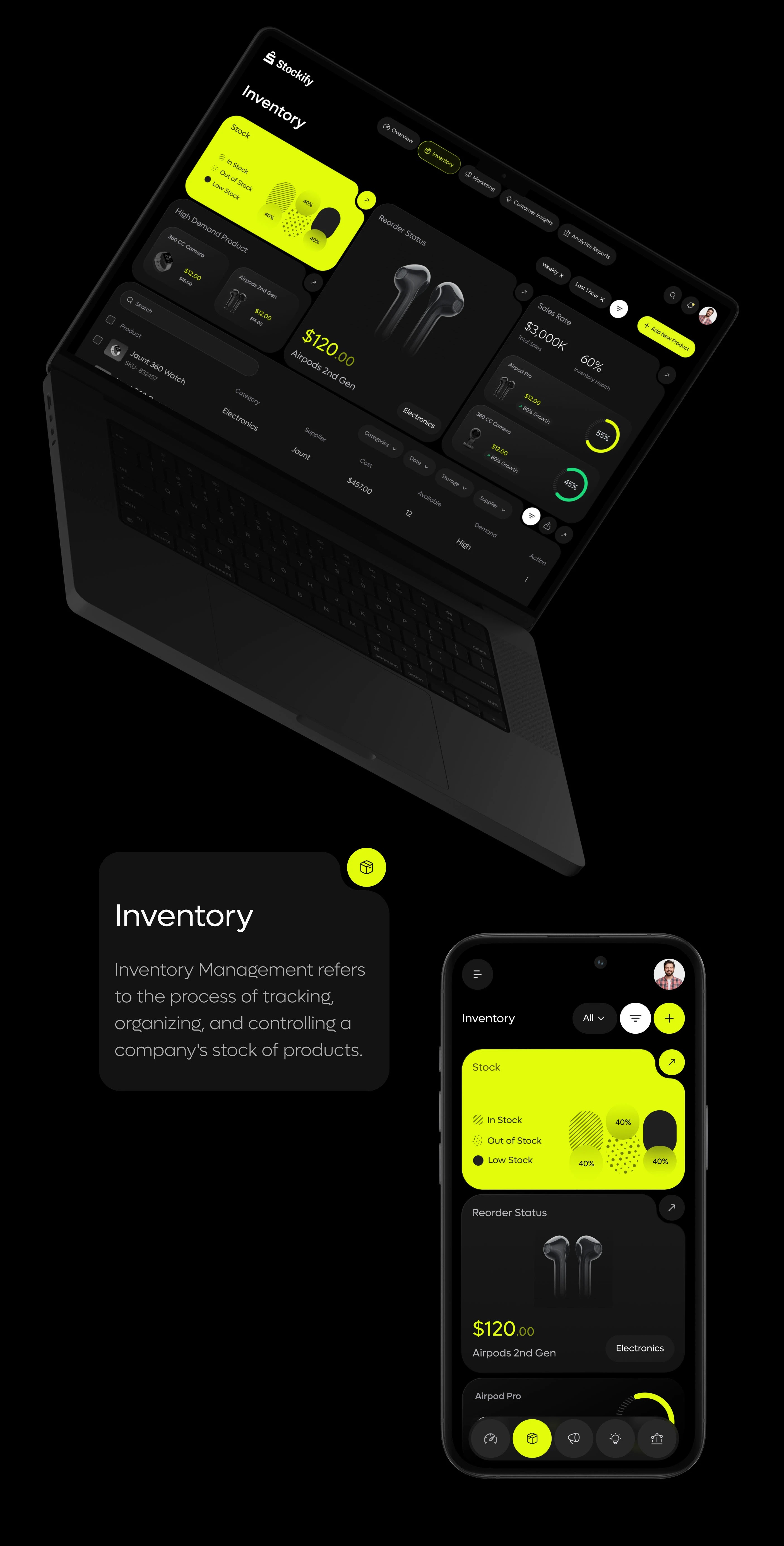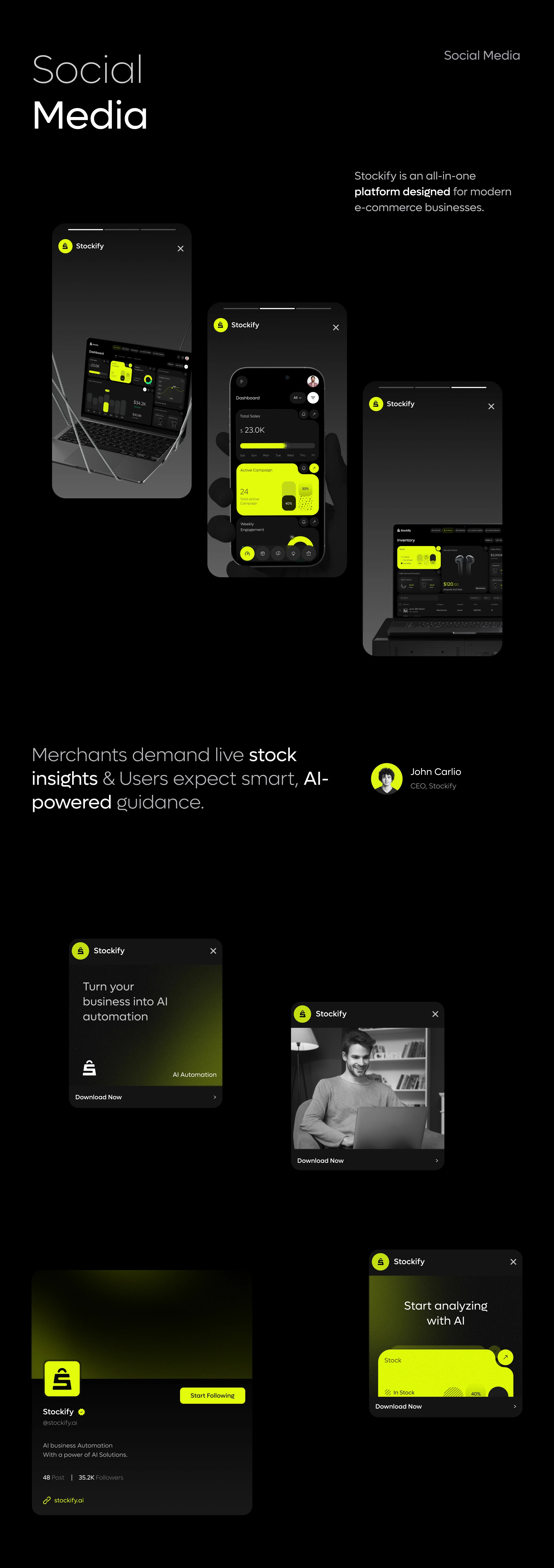 在信息密集的 B 端 SaaS 產品中,如何用清晰、節制而具有未來感的設計,提升用戶的效率和信任感?Stockify 的界面是一個值得研究的參考。一款聚焦 AI 推薦和智能庫存管理的電商 SaaS 工具。這類產品的設計挑戰在于 —— 如何讓用戶信任 AI 決策,并在復雜的信息中快速做出行動。它不是做“好看”的界面,而是通過界面傳達控制感與專業感。