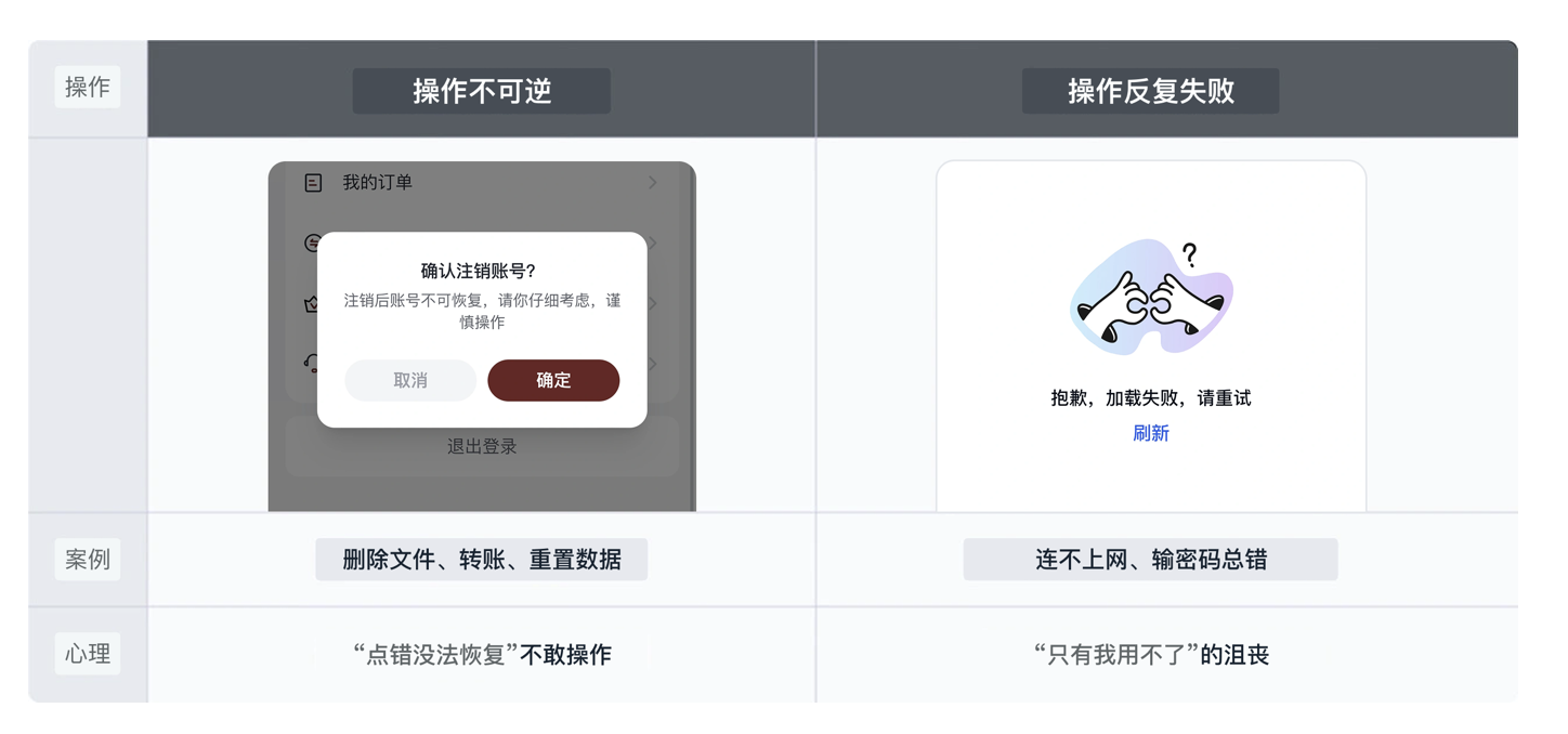 有些操作本身就帶著 “風險”,用戶出錯的概率和焦慮感會翻倍: