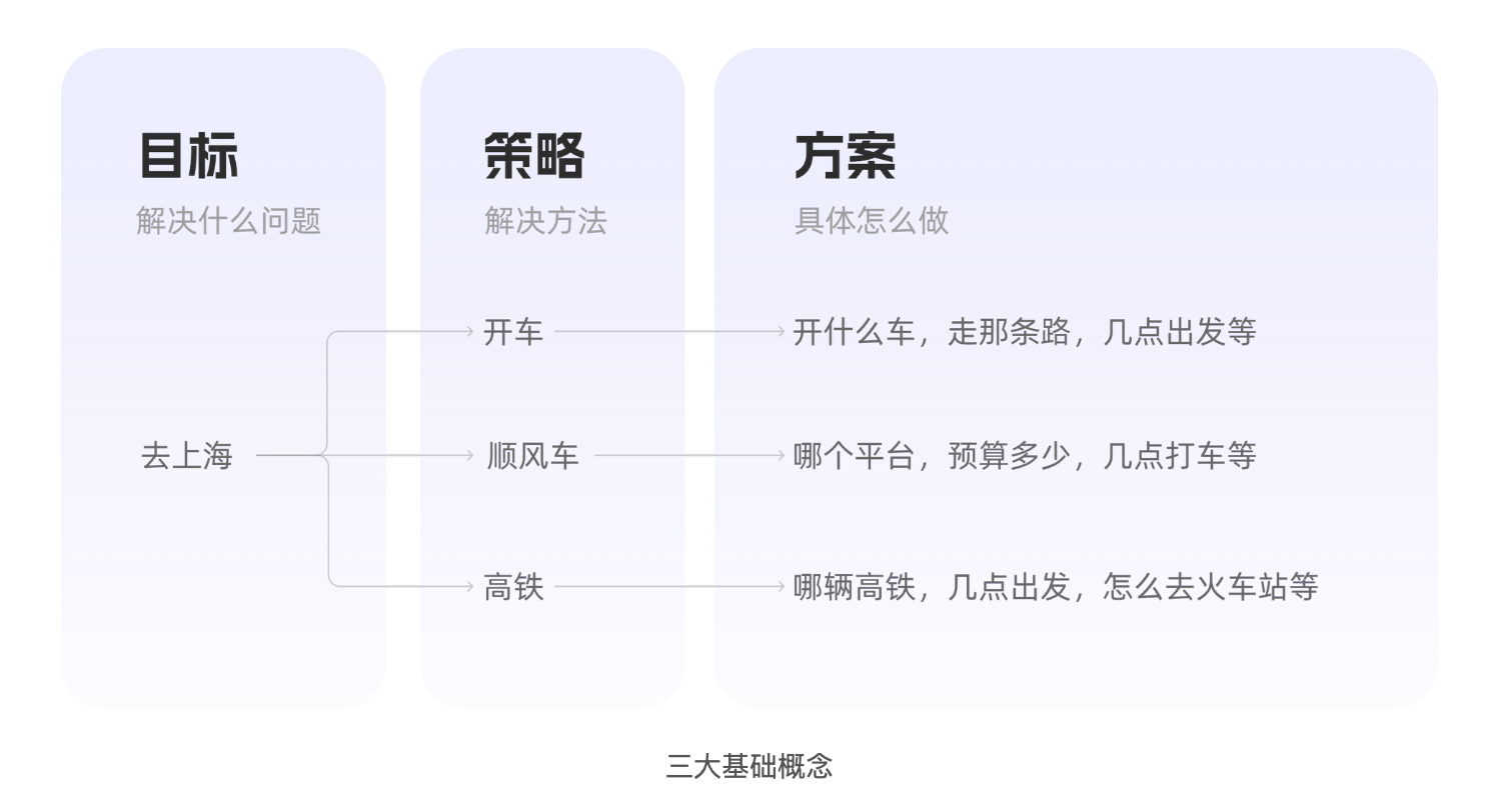 生活中的例子更易理解:業務目標是 “半年內減重 10 斤”,設計目標(對應個人行動目標)是 “每月運動頻次提升 4 次、飲食熱量控制在 1500 大卡內”,策略是 “選擇家門口的健身房降低通勤成本”“用飲食 APP 記錄熱量”,方案是 “每周一 / 三 / 五晚 7 點健身”“早餐搭配雞蛋 + 燕麥”。