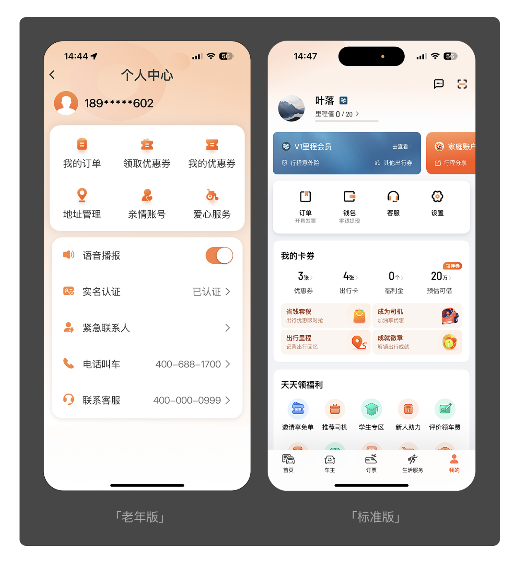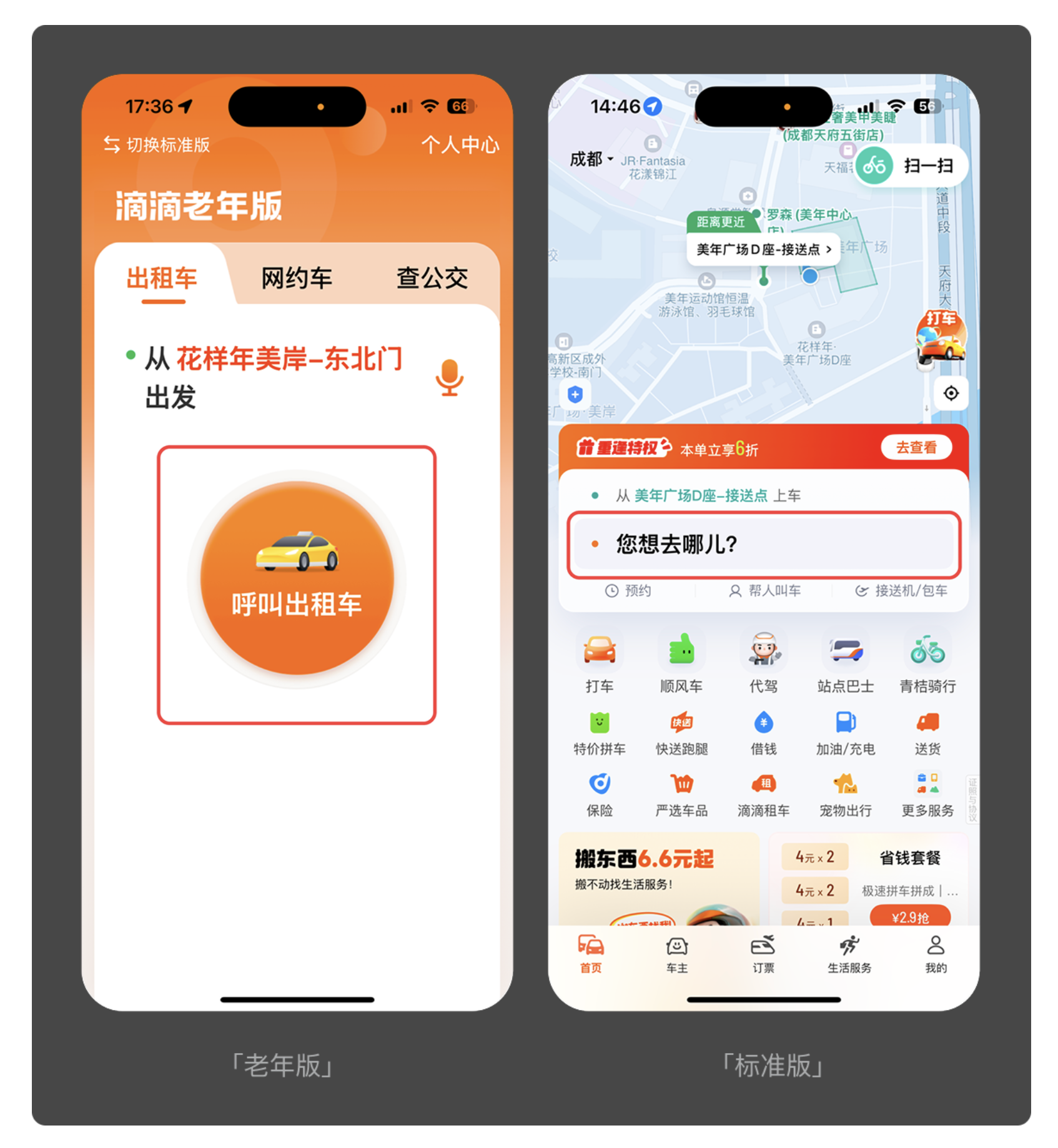 清晰的界面是老人順利操作的基礎(chǔ)。老年用戶的視覺敏感度下降,過小的字體、密集的圖標(biāo)、復(fù)雜的排版都會(huì)給他們帶來困擾。滴滴老年版將主要功能模塊以大字體、高對(duì)比度的圖標(biāo)形式呈現(xiàn),摒棄了標(biāo)準(zhǔn)版中繁雜的附加服務(wù)入口,讓 “打車” 這一核心功能一目了然;淘寶老年版則聚焦老人常用的 “購(gòu)物、訂單、客服” 功能,隱藏了百億補(bǔ)貼、直播帶貨等復(fù)雜板塊,用簡(jiǎn)潔的布局和醒目的文字,降低了視覺識(shí)別成本。好的適老化界面設(shè)計(jì),就像給產(chǎn)品 “畫重點(diǎn)”,讓老人無需費(fèi)力尋找,就能快速定位所需功能。