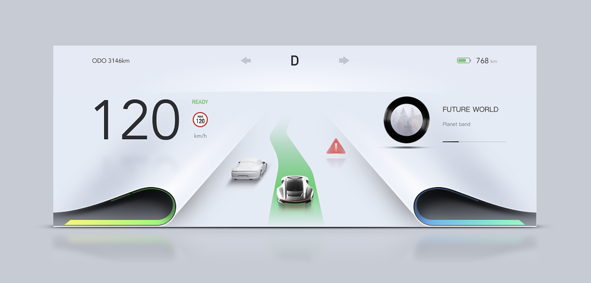 聚焦設計主題,將核心風格做到極致。若主打 “未來星際風”,可在儀表背景添加動態星軌紋理,功能模塊采用全息投影式設計,警告提示以 “星際信號” 形式呈現;若側重 “自然生態風”,可將電量顯示設計為生長的植物圖形,續航里程隨電量變化呈現葉片舒展或收縮狀態,通過動態效果傳遞情感。風格極致化需避免 “形式大于內容”,所有設計元素都需為功能與體驗服務。