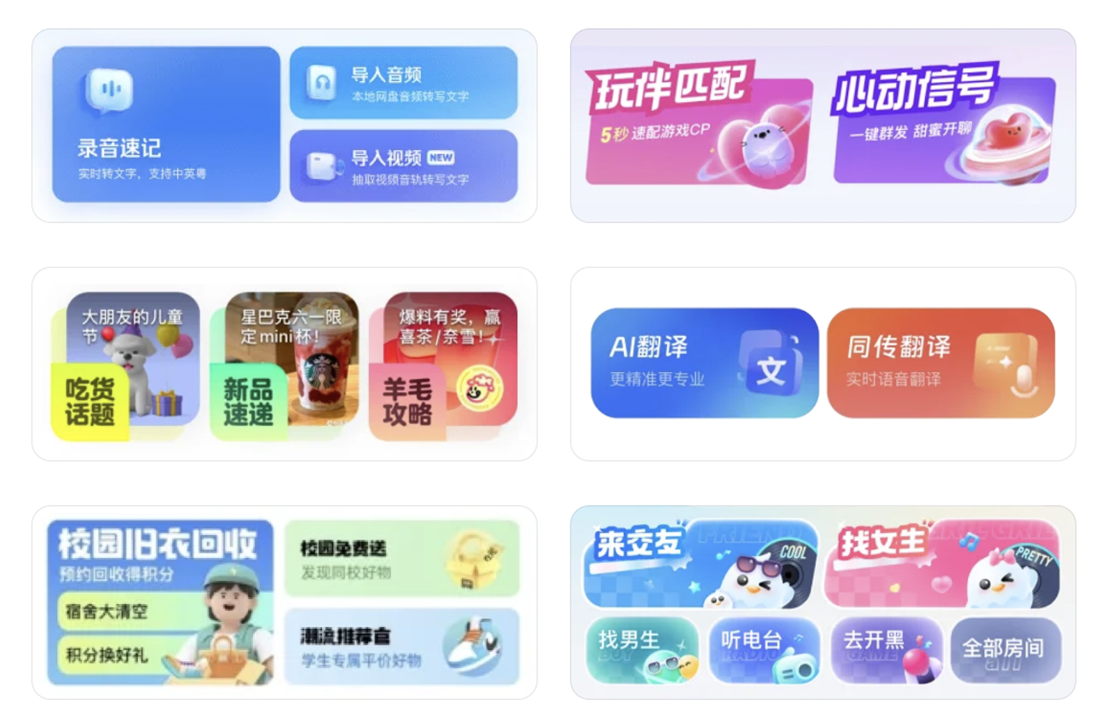 這樣的排版,既讓用戶一眼看到核心功能,不用在一堆卡片里找重點,又讓頁面有高低起伏的節奏感,不會顯得呆板。