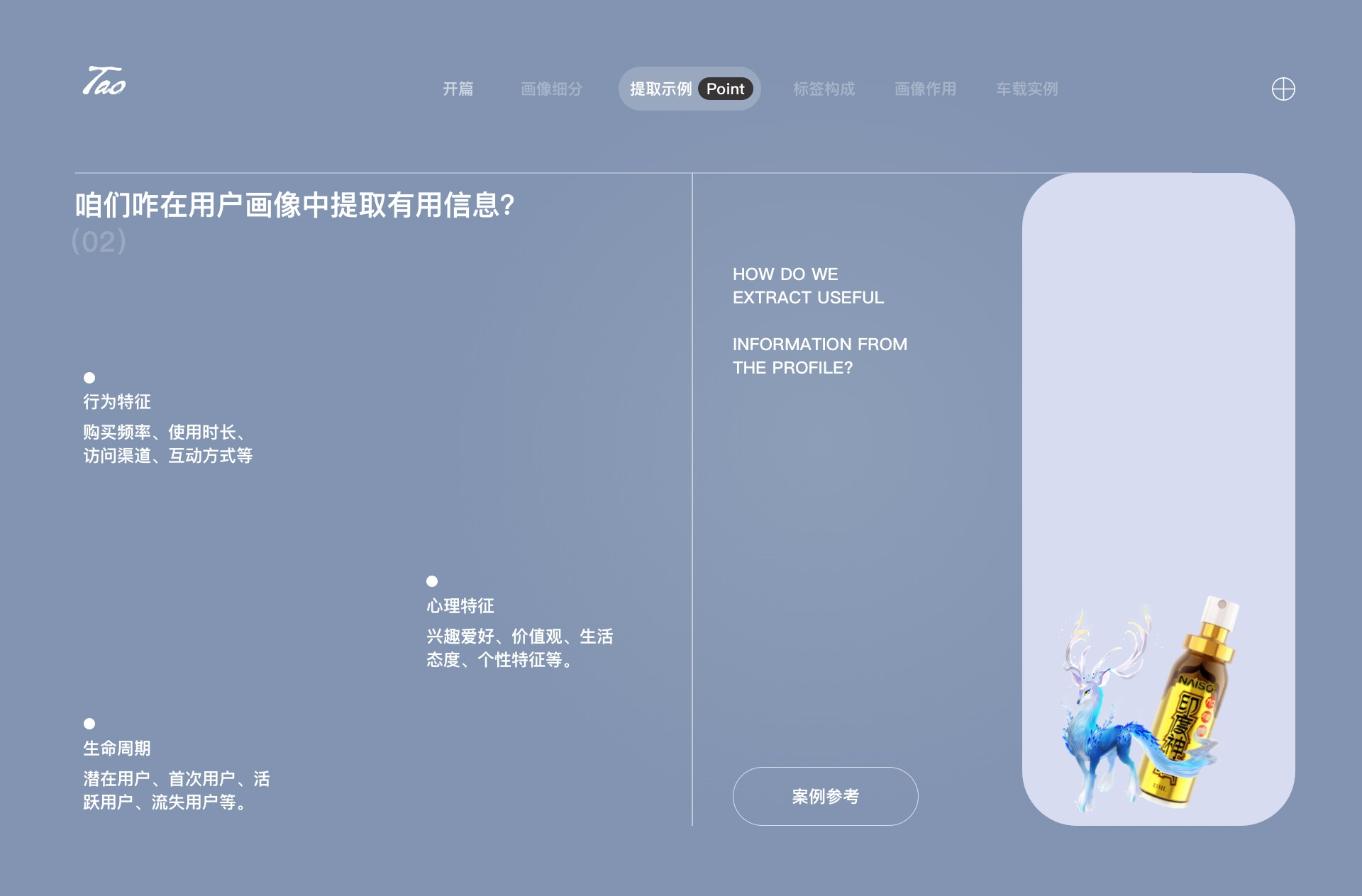對(duì)某類人中的典型用戶跟蹤總結(jié) ,其中包含個(gè)人屬性、生活方式、社會(huì)屬性、家庭屬性等等。