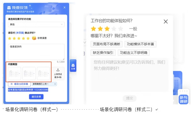 (3)灰度上線或全量上線后,我們通常會對上線后的新方案進行對比性可用性測試,通過灰度方式在同一時間維度下比較新方案和原方案的可用性反饋和用戶滿意度,確保方案在全量上線之前修復任何潛在問題。因此,在該階段我們以 A/B 測試+場景化調研問卷(如下圖所示)為主,通過用戶體驗數據和業務數據來評估出最優版本。