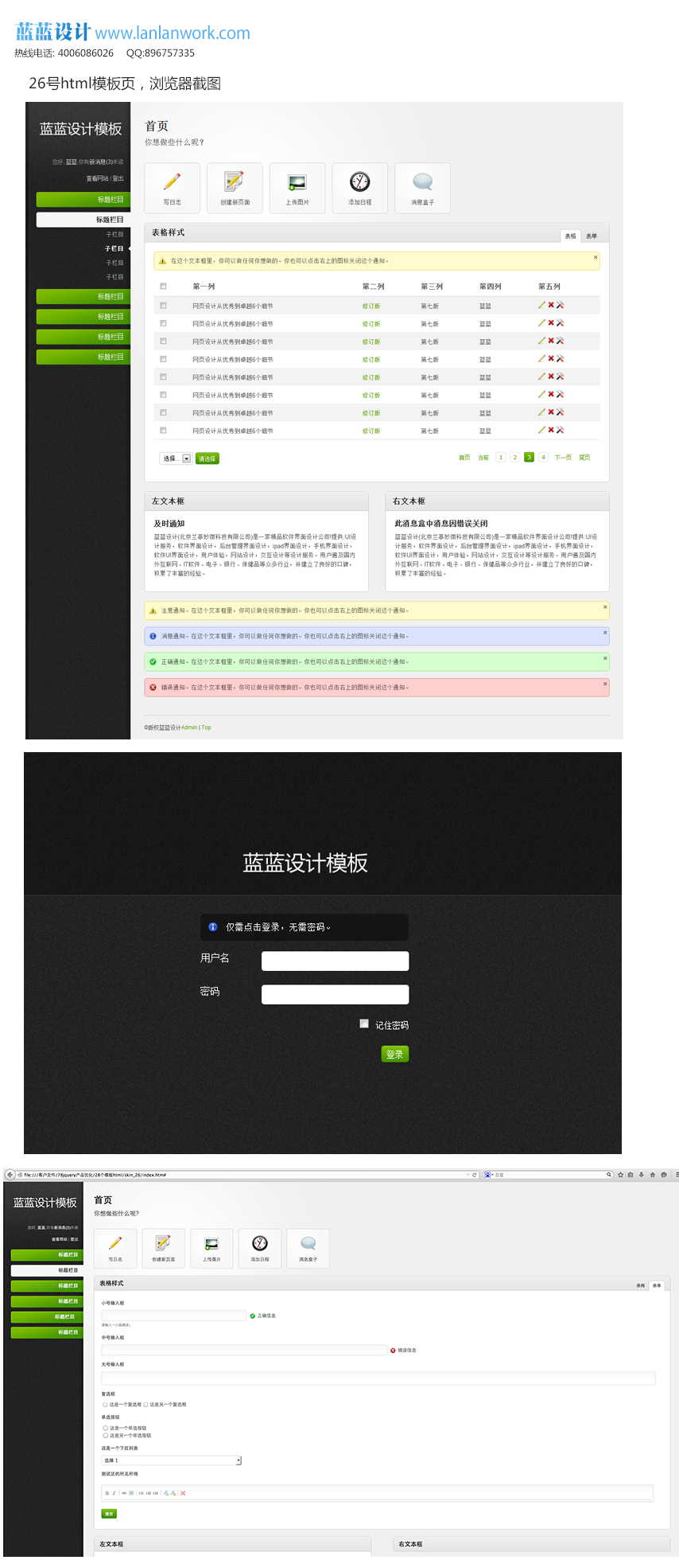 內容包含登錄頁、列表頁、輸入頁、共3頁,html、images/css/div