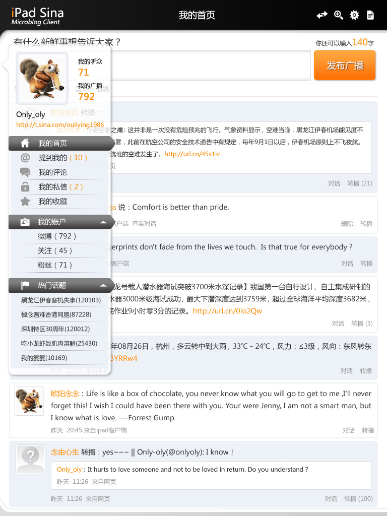 新浪微博ipad界面欣賞之一