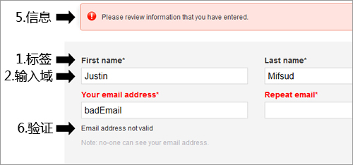 的注冊表單用的全是句子,盡管有些地方單個詞語就能搞定。