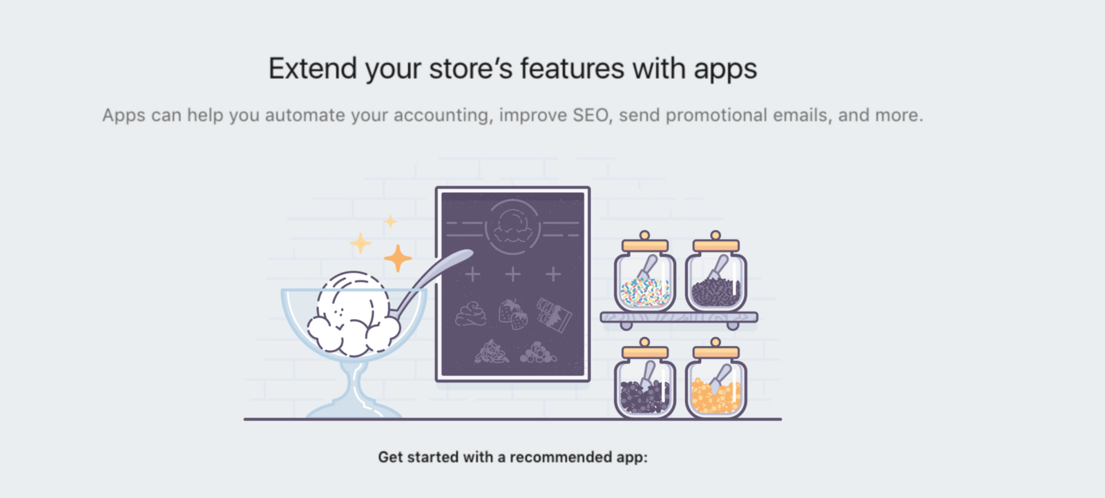 這個(gè)元素與那個(gè)元素在某刻具備相似性。如下圖所示,它不需要展示實(shí)際產(chǎn)品就能讓用戶理解。圖中并不是真正在討論冰激凌,而是通過插畫以比喻的方式傳遞了“正如用戶能夠按口味喜好用配料調(diào)制成個(gè)人專屬的冰激凌一樣,你也能根據(jù)自己的需要為利用我們提供的服務(wù)(App)來打造你的專屬店鋪”的理念。