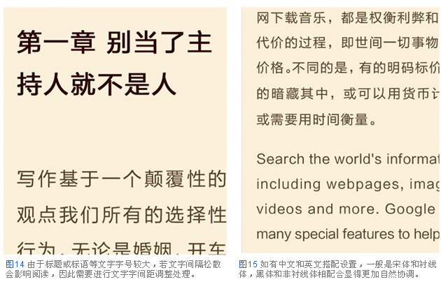 下圖是適用于一般文章正文文字大小的圖例。即便是相同大小的文字,字體不同看起來大小也不一樣。而且選擇文字大小時,需要考慮文章的閱讀方式,比如,是在大屏幕機器還是小屏幕。(圖3-4)