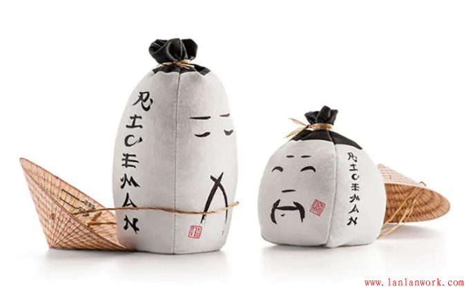 包裝外形以亞洲稻農(nóng)戴蓑帽的傳統(tǒng)形象為原型,圓錐形帽子紙盒蓋子內(nèi)側(cè)則巧妙與標記測量米量的米杯結(jié)合,實用又環(huán)保。兩種不同尺寸的袋子分別裝盛不同的大米類型:短粒米為小袋子,長粒米為高袋子。