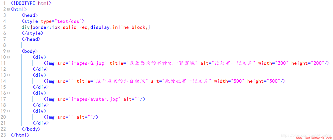 title和alt 的區別別,體現在 第 11 行和第 14 行,想必大家就能看出來了吧