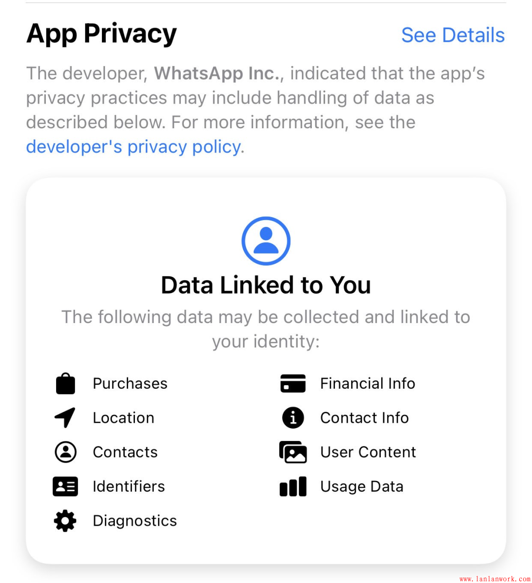 此外,蘋果更新了appstore,增加了一個新的徽章,顯示了app獲取與你身份有關的數據。