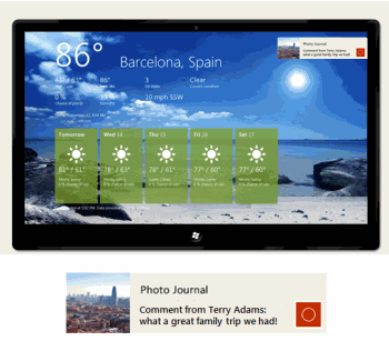 你也可以使用toast notifications 向用戶進行提示。這類即時信息會在屏幕右上方出現,并且會對用戶在當前應用中的任務起到干擾和中斷的作用。通常,在某個應用第一次運行的時候,我們可以讓用戶選擇是否接受這種提示方式。toast類似于iOS當中出現在屏幕頂部的通知,不過在Windows 8中,設計師可以從一組toast模板中進行選擇,使它的呈現方式與當前應用具有更強的相關性。