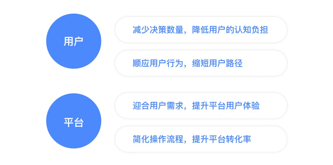 對用戶:預(yù)判設(shè)計幫助用戶減少做決策的數(shù)量,降低用戶的認(rèn)知負(fù)擔(dān),順應(yīng)用戶行為進行預(yù)判,減少冗余步驟、縮短用戶路徑,節(jié)省用戶時間,以此來為用戶創(chuàng)造更愉悅輕松的體驗。