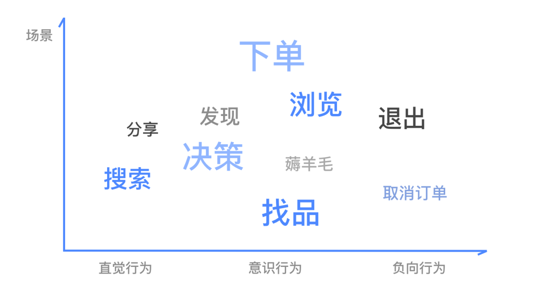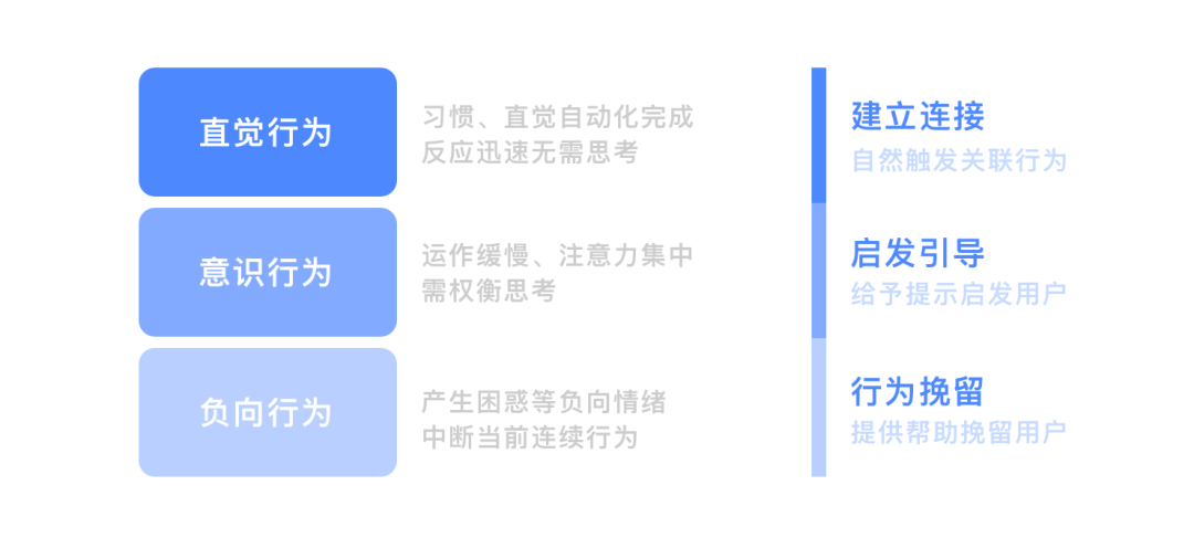 預(yù)判設(shè)計需要做的是根據(jù)用戶當(dāng)前所處場景,判斷用戶需求及最終目標(biāo),分析用戶正在進行的操作,預(yù)判用戶下一步的行為,在整個行為路徑中為用戶適時提供相應(yīng)的幫助或引導(dǎo)。根據(jù)用戶當(dāng)前行為及目標(biāo)的明確程度不同可將用戶行為分為「直覺行為」、「意識行為」、「負(fù)向行為」。