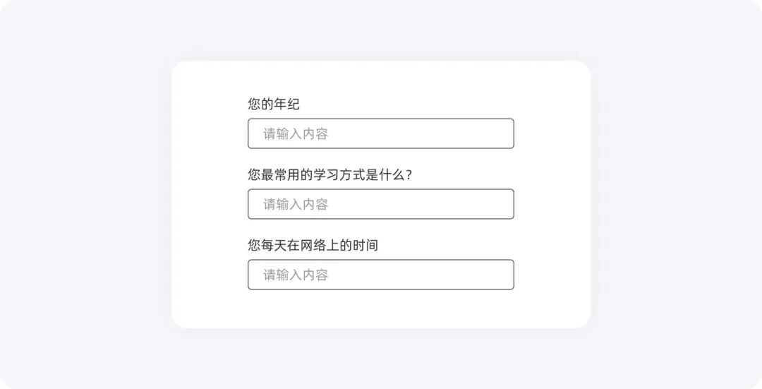 頂端對(duì)齊:會(huì)占用較多的縱向空間,通常用于標(biāo)簽長短不可控的場(chǎng)景下,例如常見的英文表單。在中文場(chǎng)景中使用不多,如用戶問卷調(diào)查、信息搜集等。