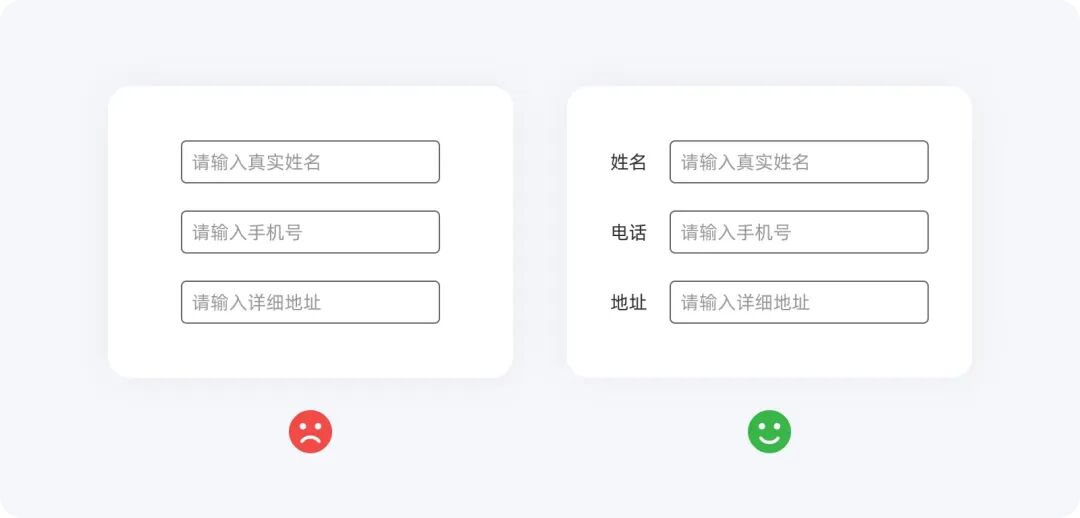 輸入框中的占位符可以為用戶提供初步的指引,幫助他們?cè)陂_始輸入前有一個(gè)短期的記憶提示。理想情況下,占位符應(yīng)作為標(biāo)簽的補(bǔ)充。然而,如果只有占位符而沒有標(biāo)簽,用戶可能會(huì)感到困惑,尤其是在他們點(diǎn)擊輸入框后占位符消失時(shí),可能會(huì)一時(shí)記不起要輸入的內(nèi)容。