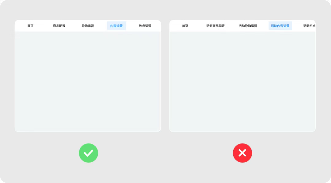 3、控制一級(jí)導(dǎo)航菜單數(shù)量,以免視覺溢出過多。保證文本易于辨識(shí),使用已于理解的圖標(biāo),減少重復(fù)文字,精簡菜單名稱。