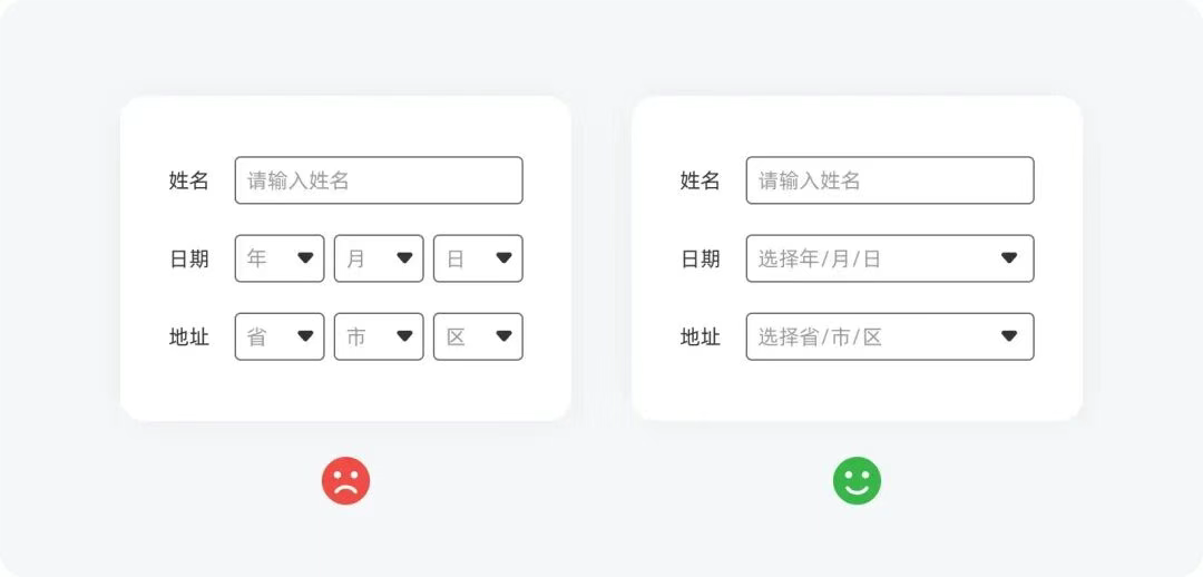 類似地址、日期這類層級(jí)內(nèi)容,不要將其分成多個(gè)字段,最好做成聯(lián)動(dòng)選擇讓用戶一氣呵成。