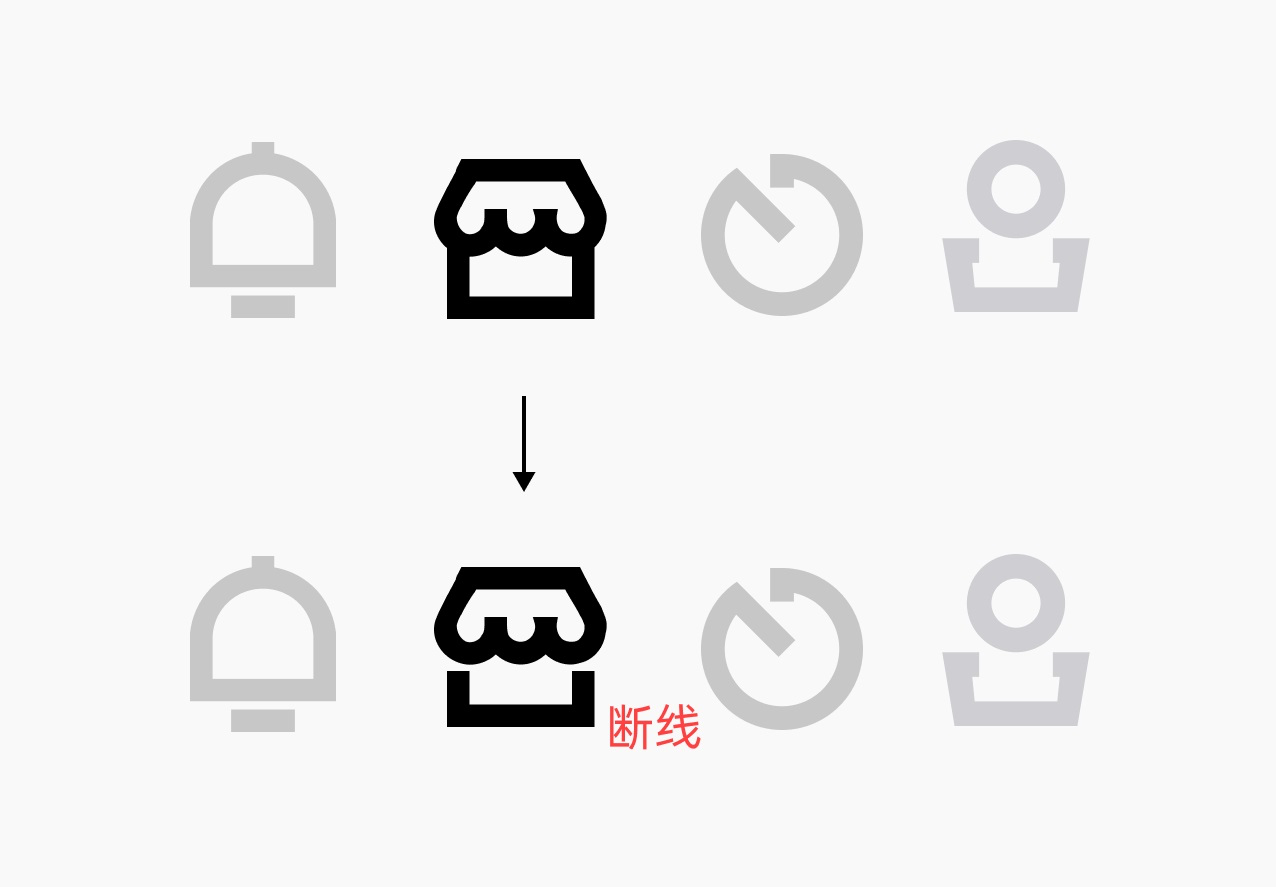 直角圓角統一了之后,還有一個統一性就是斷線,只有第二個沒有斷開的設計,所以我們再把商城進行斷線處理: