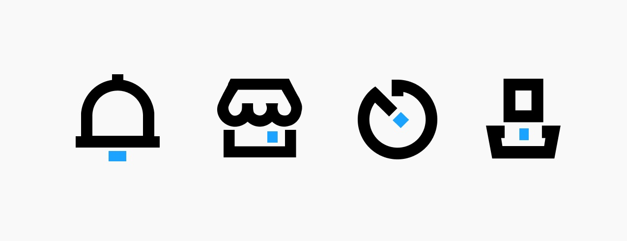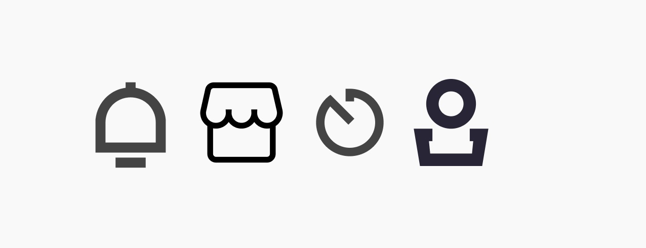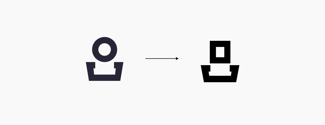 大家要明白,雖然我們可以直接下載圖標素材,而且可以通過審美讓他們變得相對精致統一,但素材畢竟還是通用的,我們還是需要融入自己的想法和設計,不能完全依賴素材,舉一個最簡單的例子,“我的”這個圖標,他的腦袋是圓形的,那我們是不是可以把他改成矩形的?