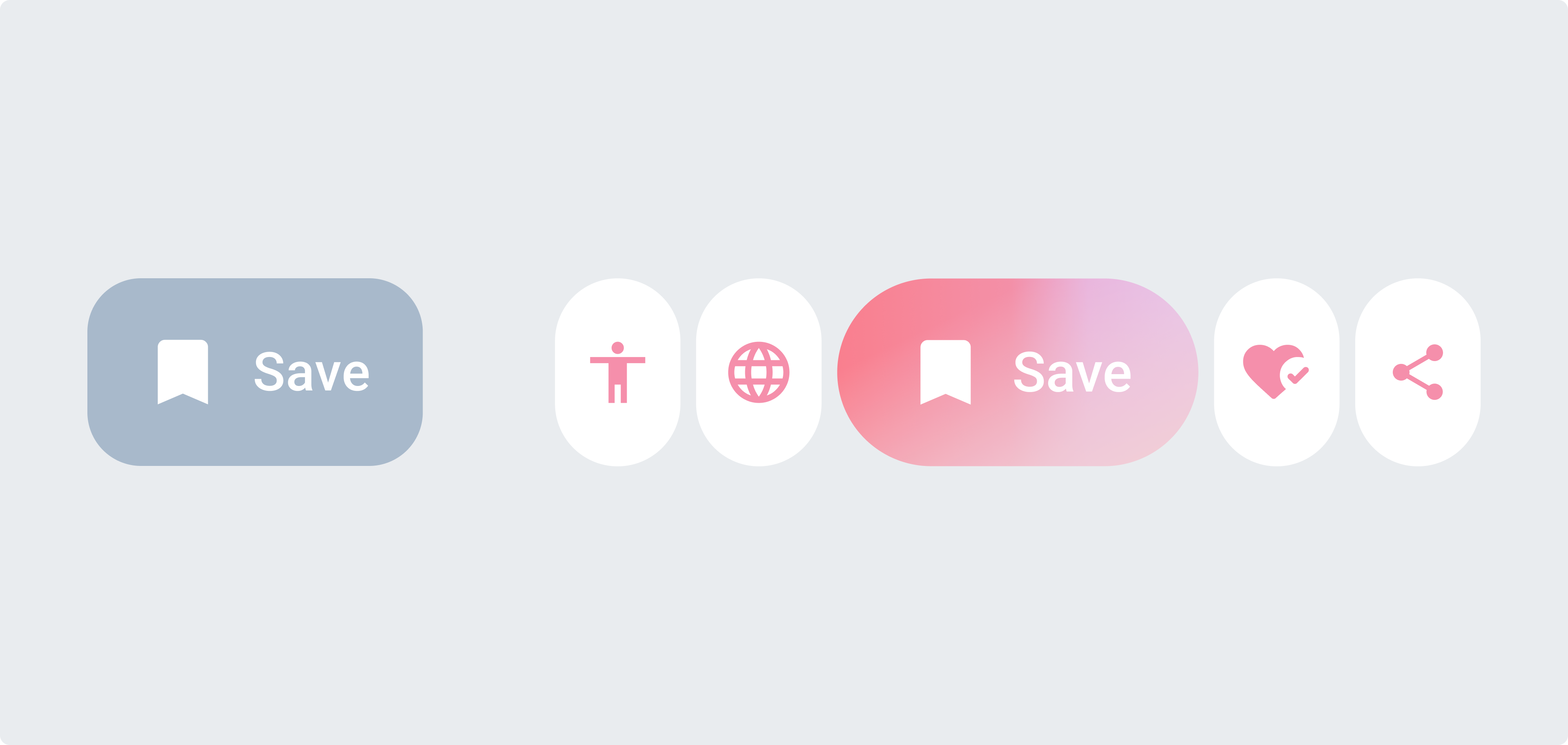 每個按鈕都保持圓潤的形狀,并且按鈕之間有一定的間距。在此組中,選定的按鈕可以改變寬度或形